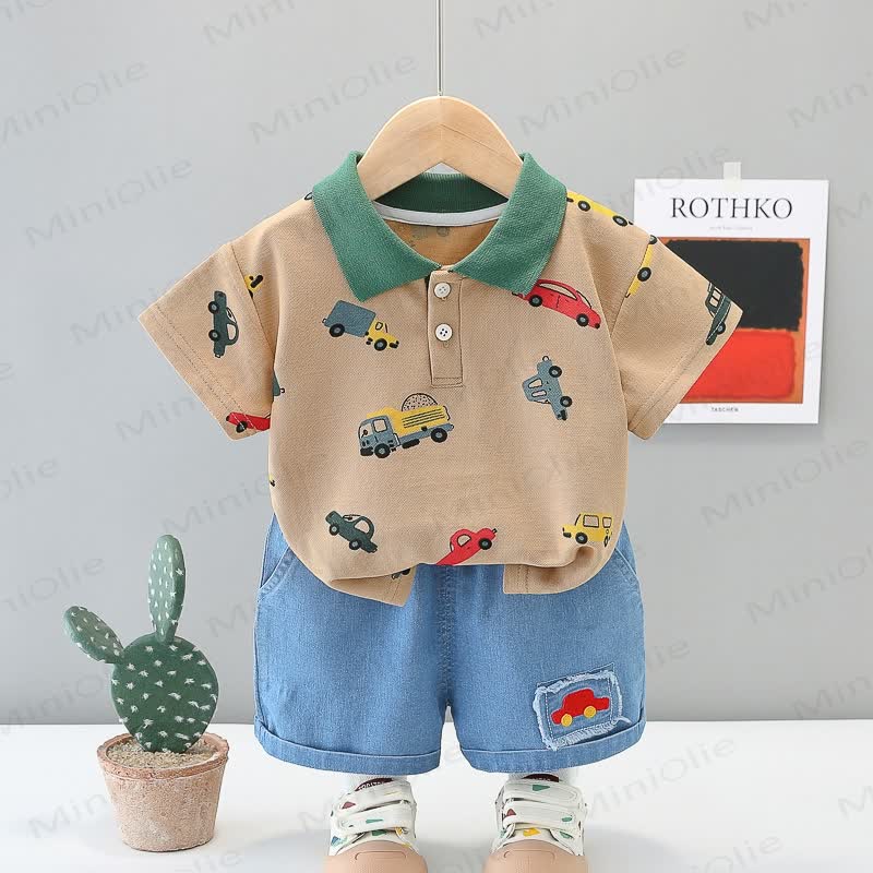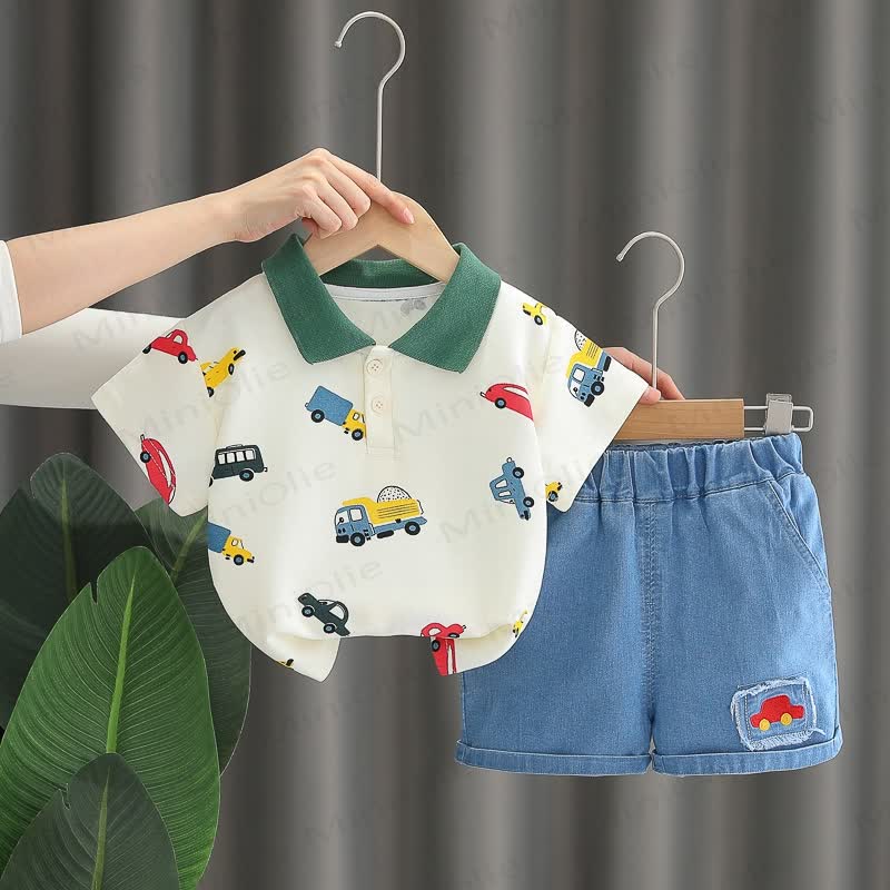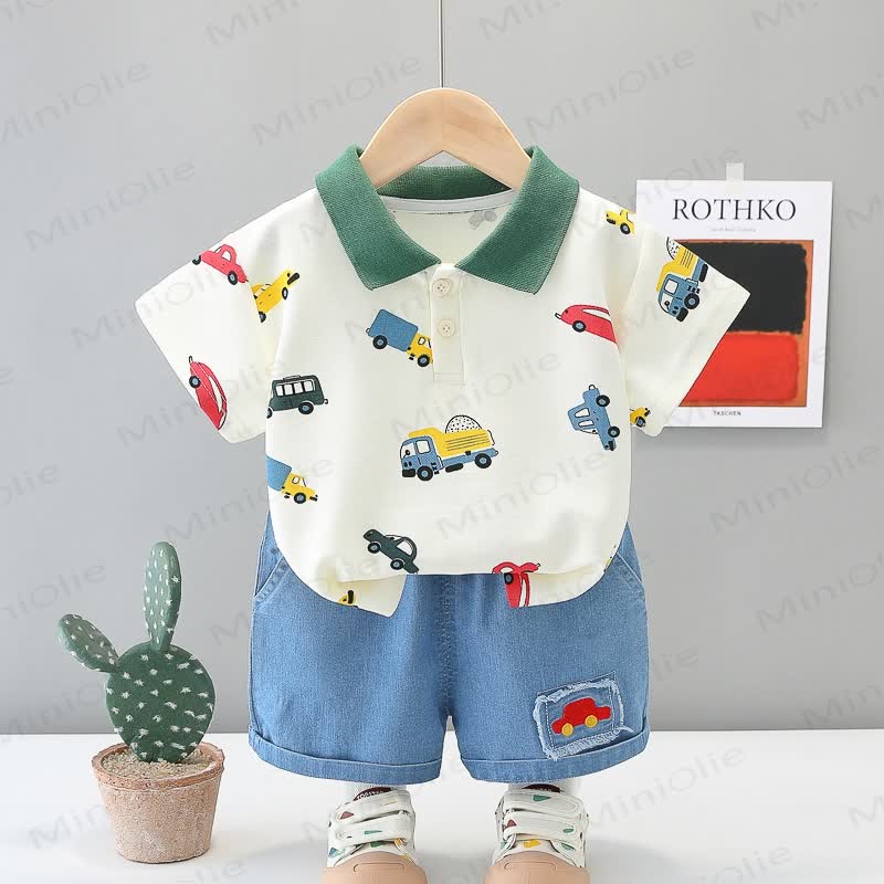 Baby 2-Piece Polo Vehicle Denim Set