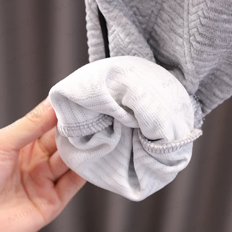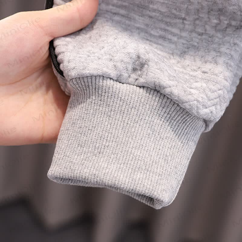 This baby boy 2-piece sweatsuit set features a soft, comfortable polyester blend perfect for everyday wear. Designed in a clean white tone with subtle black piping, it includes a cozy long-sleeve top adorned with a playful bear graphic wearing a hat and scarf, paired with matching pants that have functional pockets. Ideal for babies aged 6 months to 5 years, the set combines style and practicality for active little ones. Easy to mix and match, this outfit offers warmth and flexibility for any casual occasion.