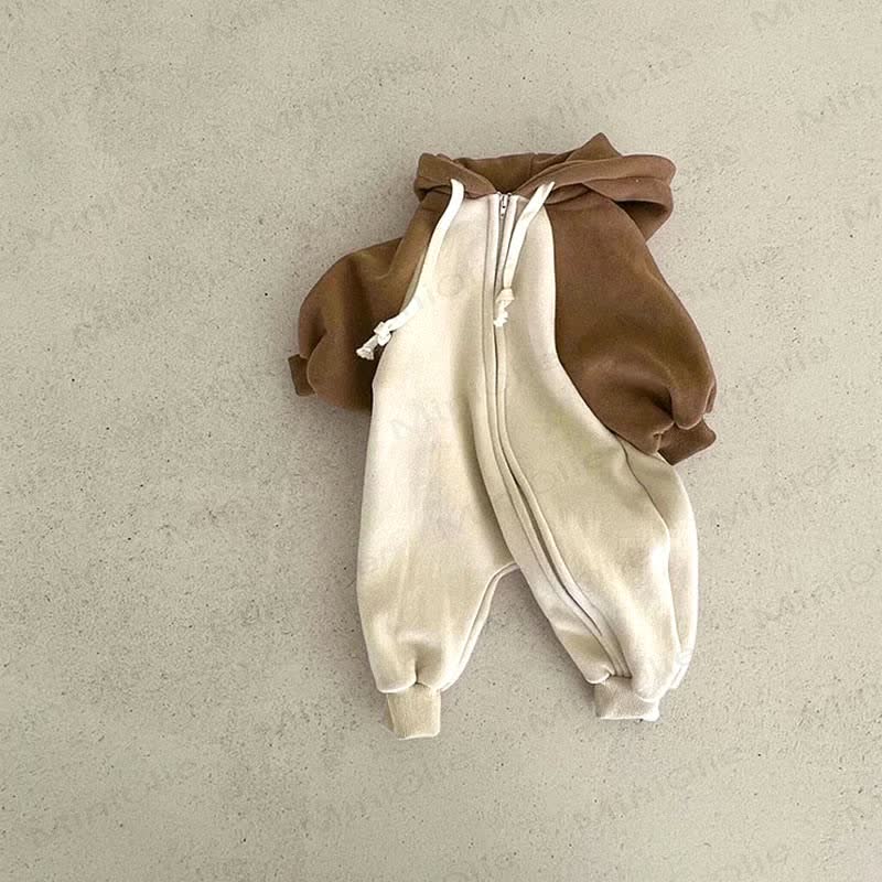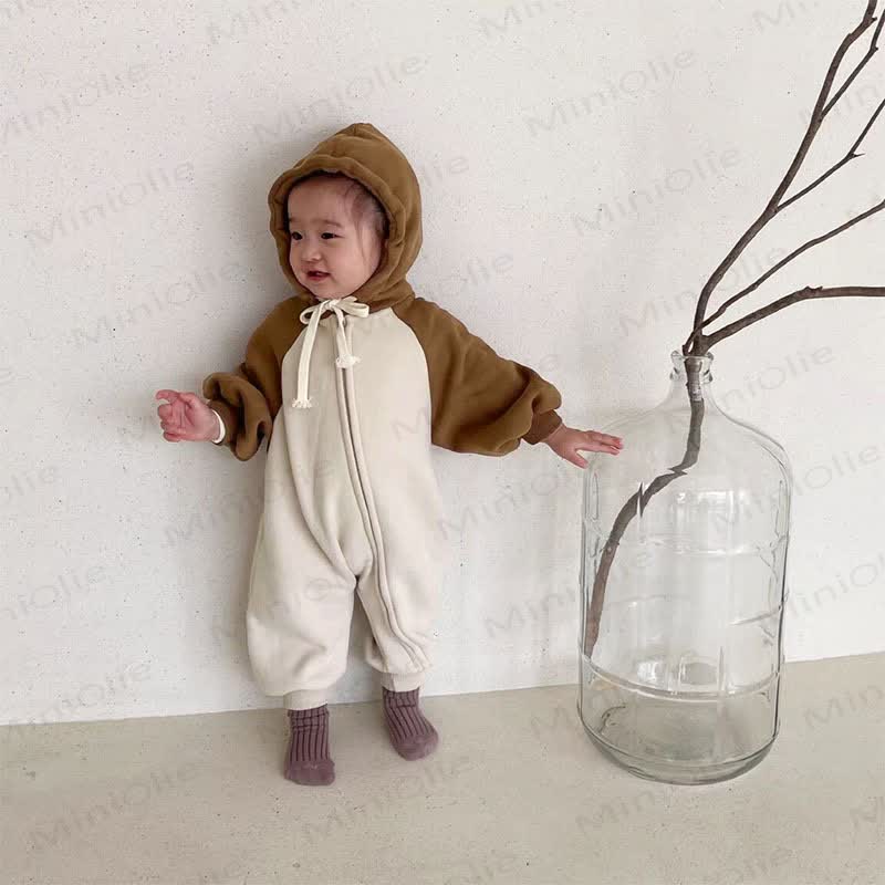 Baby Color Block Loose Hooded Romper