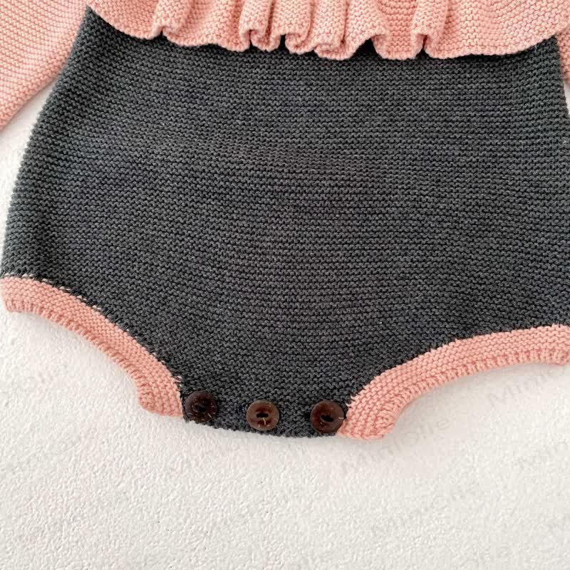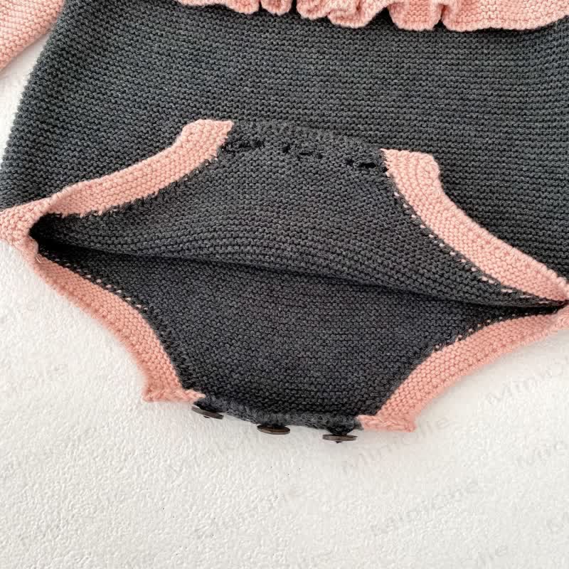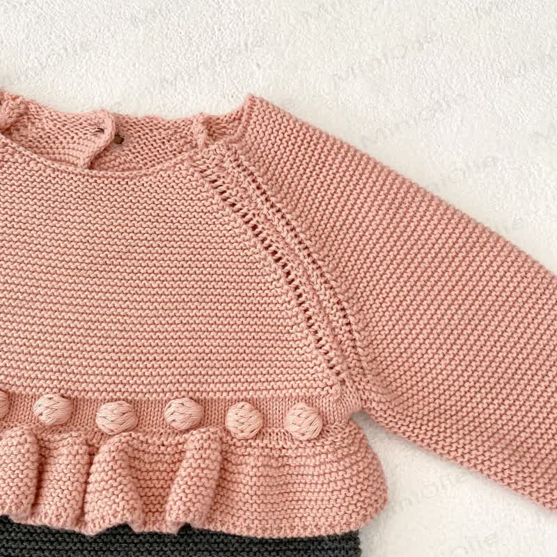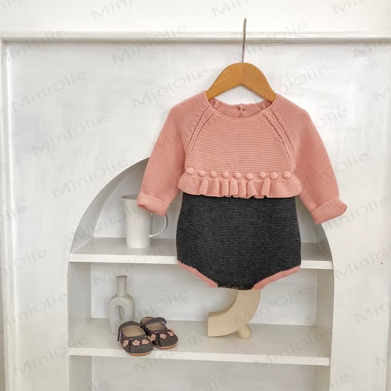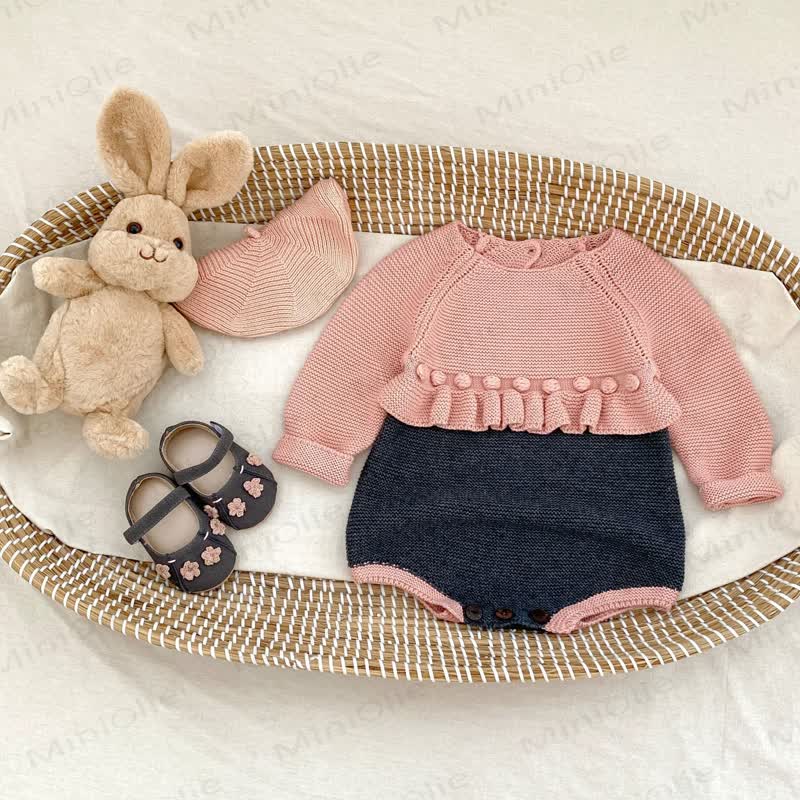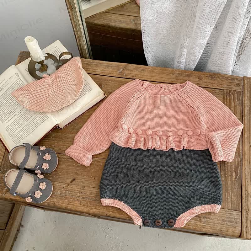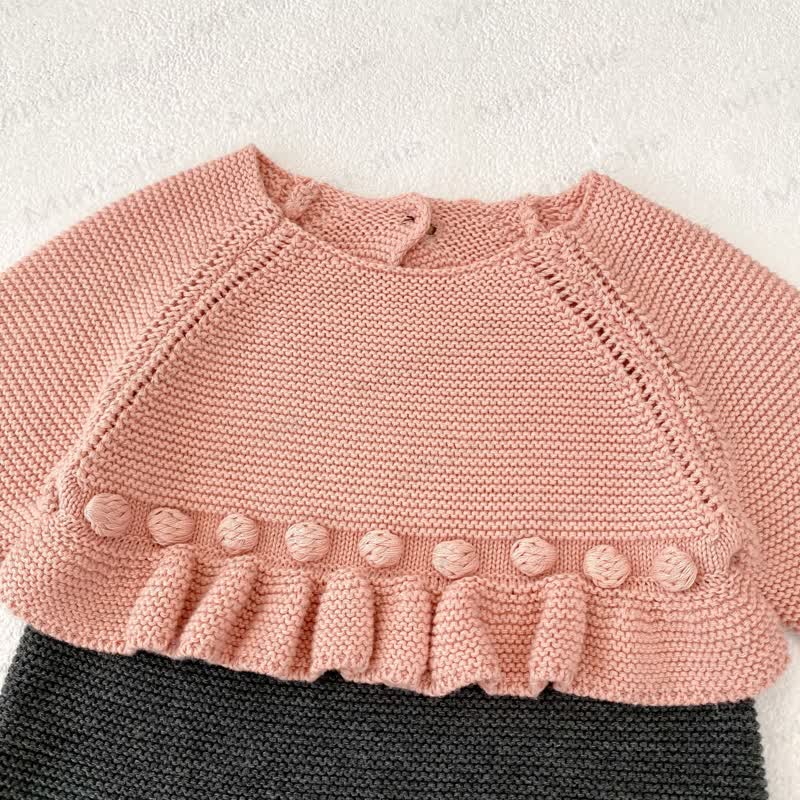 Baby Color Block Pompom Knit Bodysuit