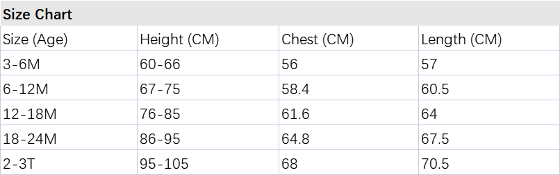 *Babies grow at their own pace. It’s recommended to choose the size that corresponds to your mini’s height and weight rather than their age for a much more accurate fit. Please also take delivery time into consideration.