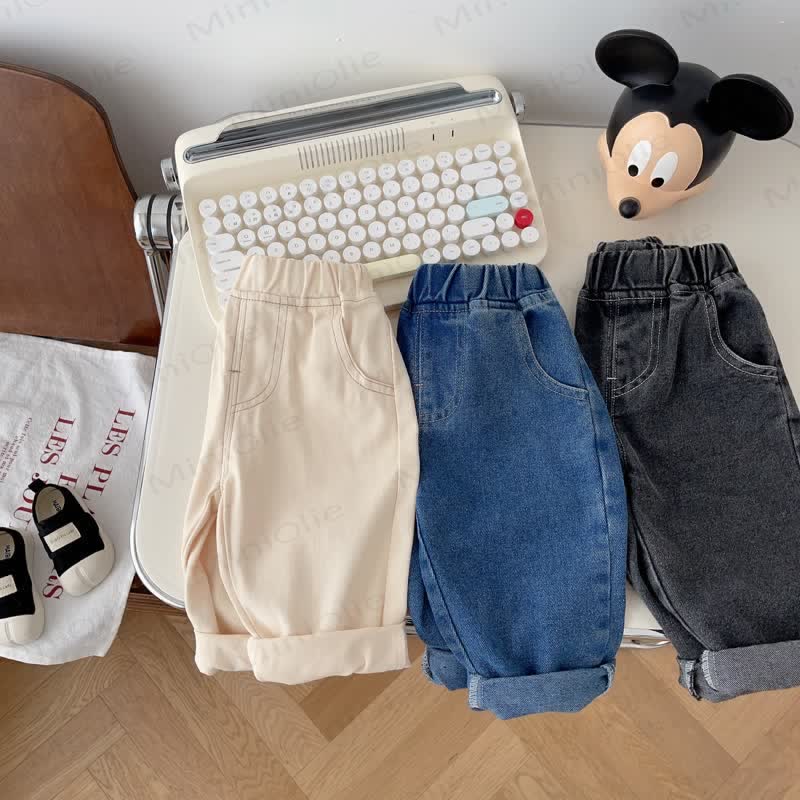 Baby Denim Solid Color Simple Pants