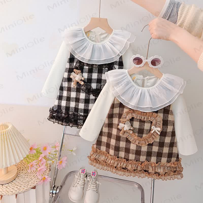 Baby Girl Plaid Bow Bear Love Dress