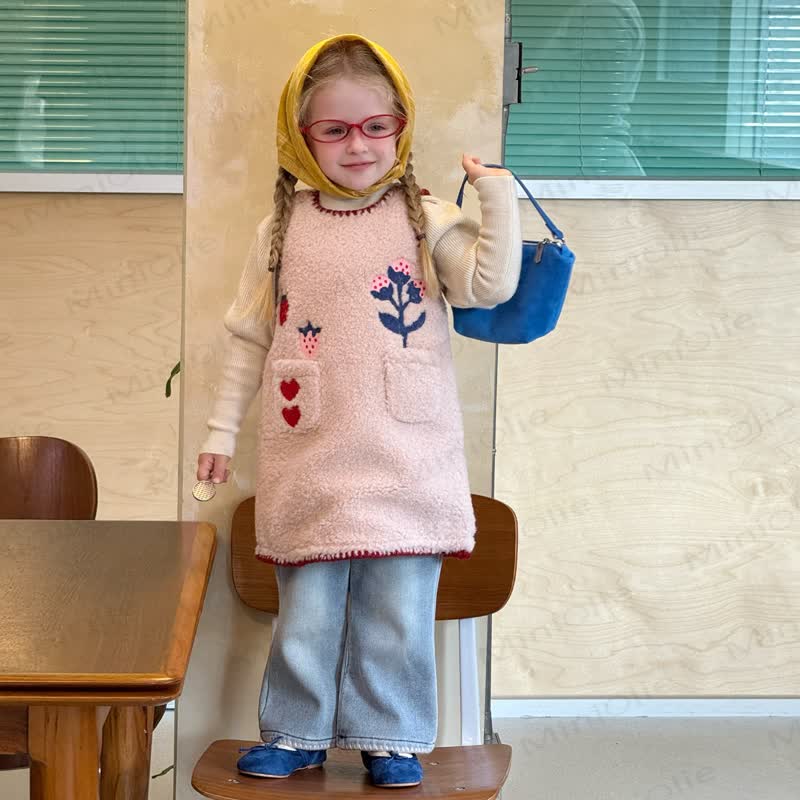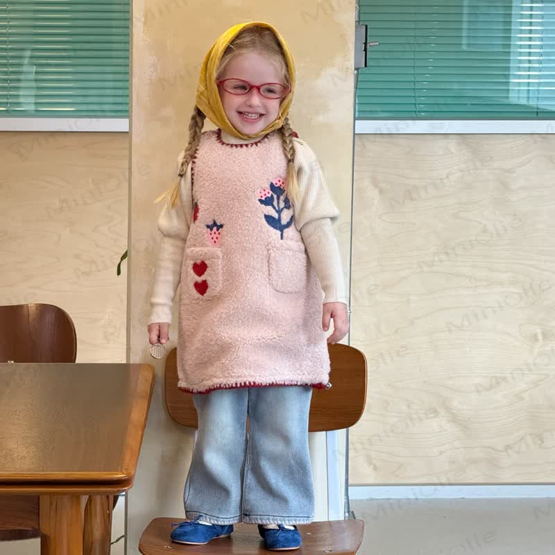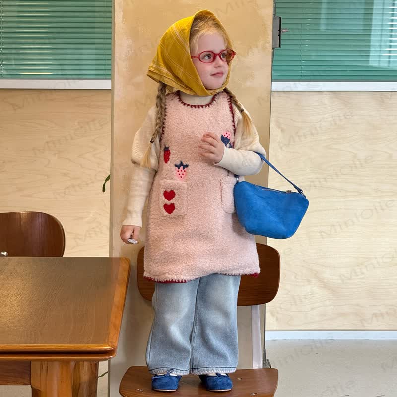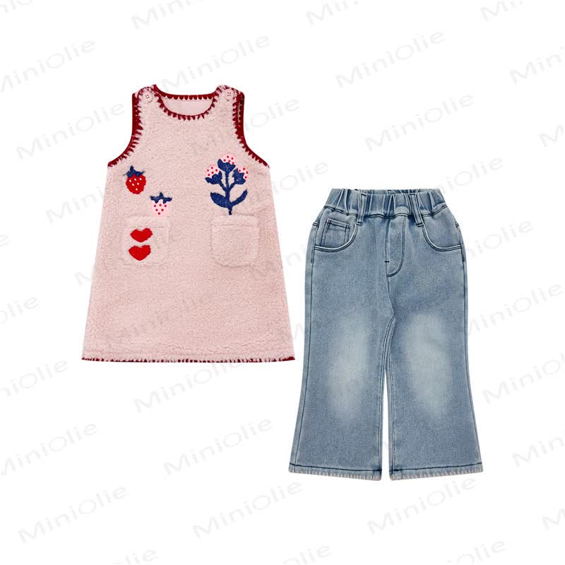 Color: Quilted Pink Dress, Denim Pants, Beige Top