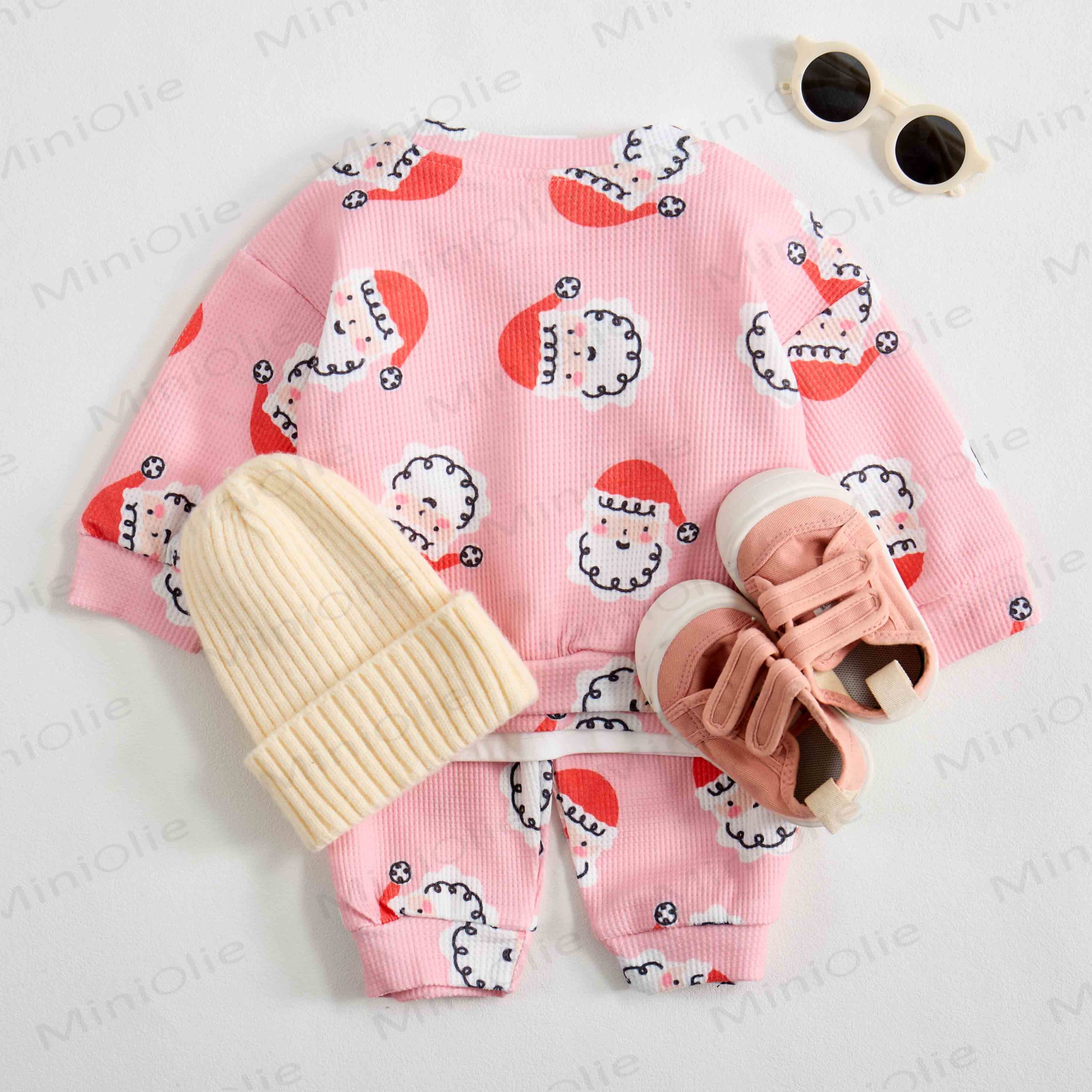 Baby Waffle Christmas Santa Claus Sweatshirt 2-piece Set