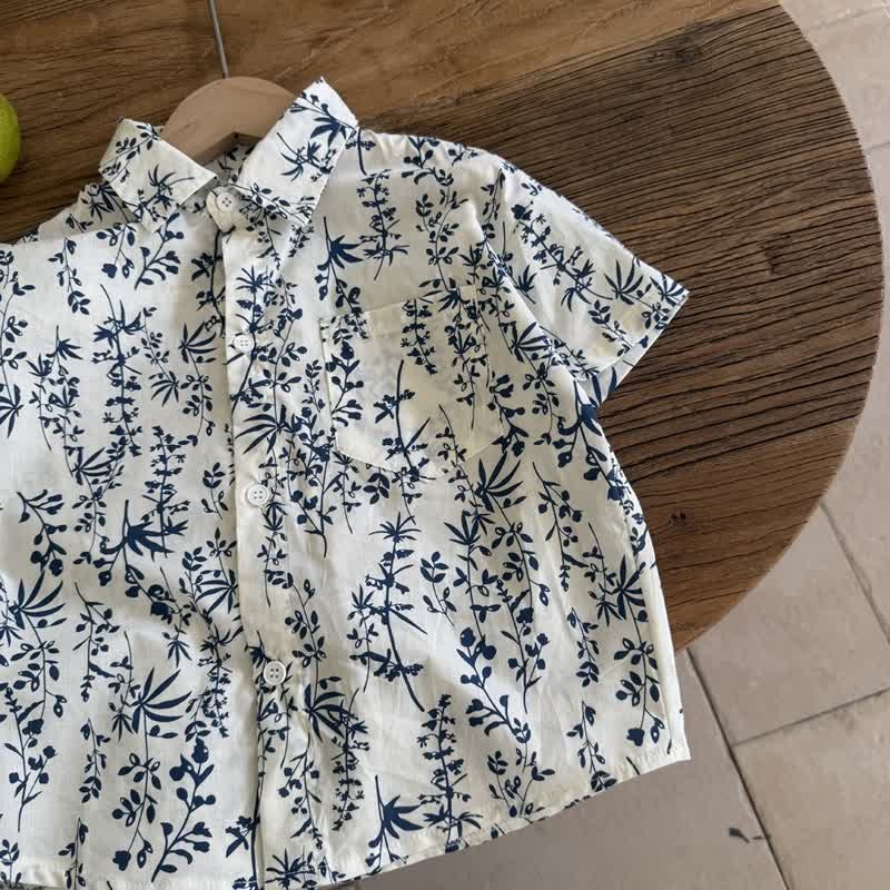 Kid Boy Floral Ink Painting Shirt Top